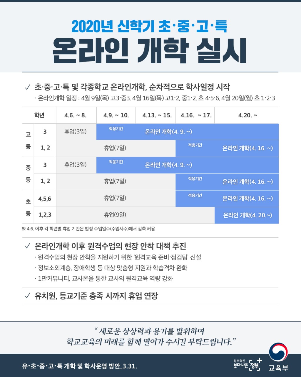2020 신학기 일정 교육부 발표내용