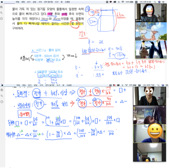 신의수학에서도 온라인화상수업이 벌써 두 달째 진행이 되고 있네요.