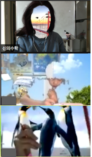 온라인 화상수업 중_미디어아트를 접목한 수학강의