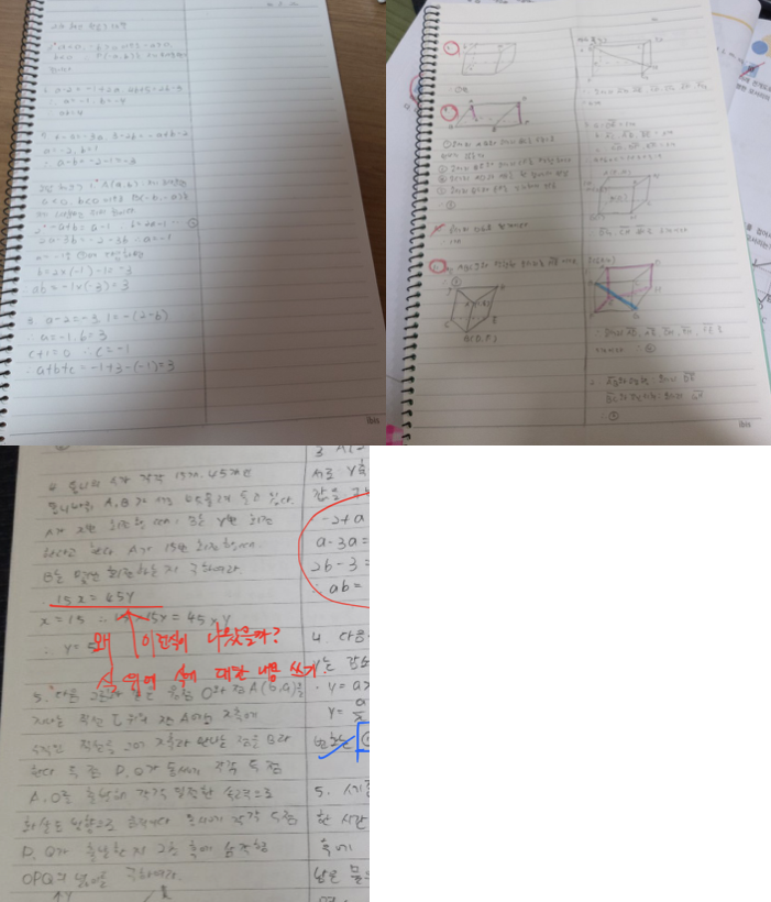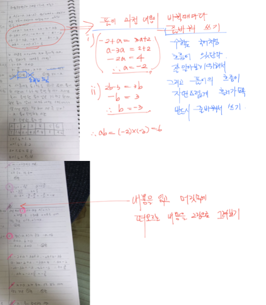 물론 처음 풀이공책을 적으라고 하면 무엇을 적어야하는지 막연해하는 경우가 대부분이고 적더라도 내용에 대한 해석보다 무조건 계산계산~~ 온통 숫자만 적게 됩니다.